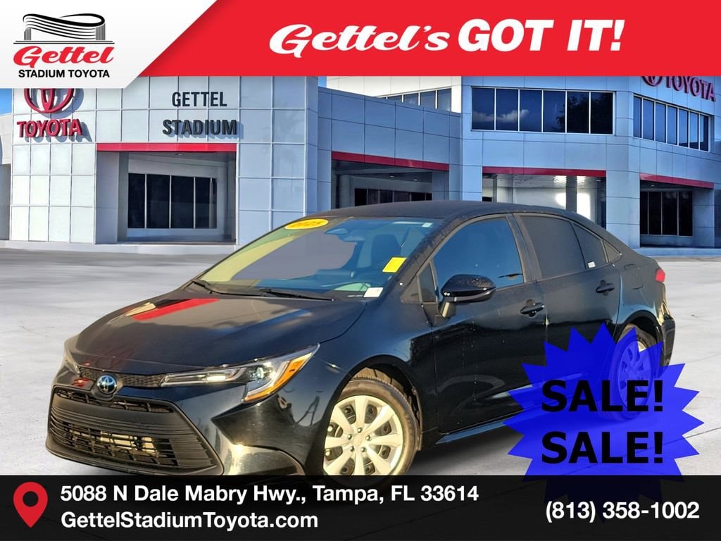 The ALL NEW Gettel Stadium Toyota is pumped up to offer this 2025 Toyota Corolla LE in Midnight Black Metallic with Black Cloth. It features: