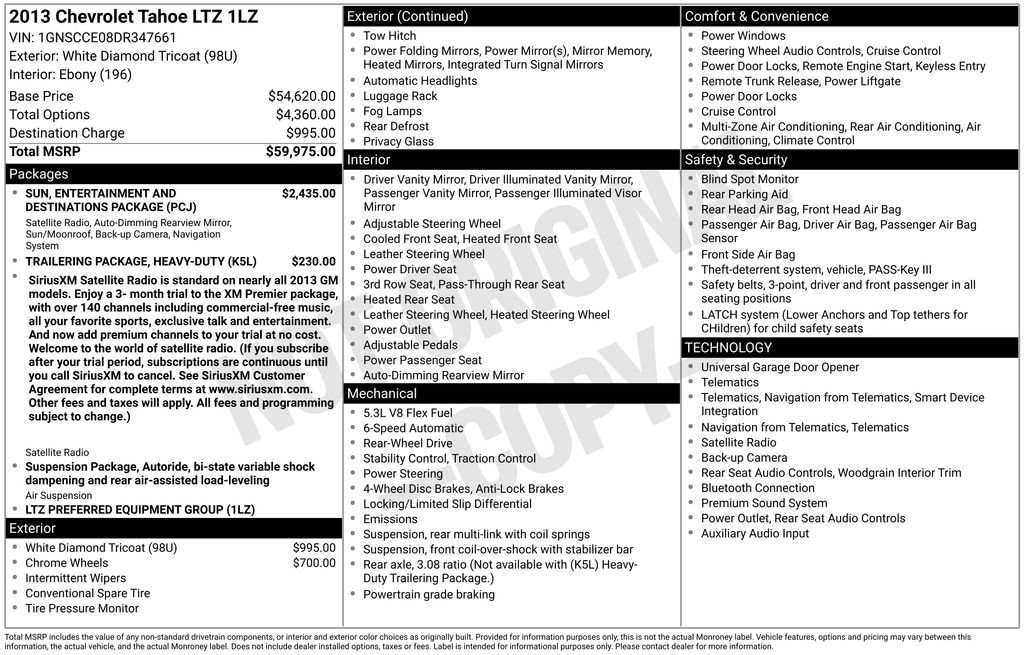 Whether you're transporting the family, towing a trailer, or embarking on a road trip, this 2013 Chevrolet Tahoe LTZ is the perfect companion. With its impressive capabilities, refined interior, and unbeatable value, this SUV is sure to exceed your expectations.