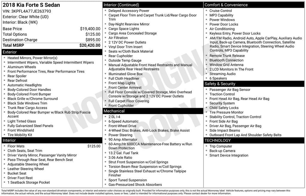 The ALL NEW Gettel Stadium Toyota is very proud to offer this 2018 Kia Forte S in Clear White with Black Cloth. It features: