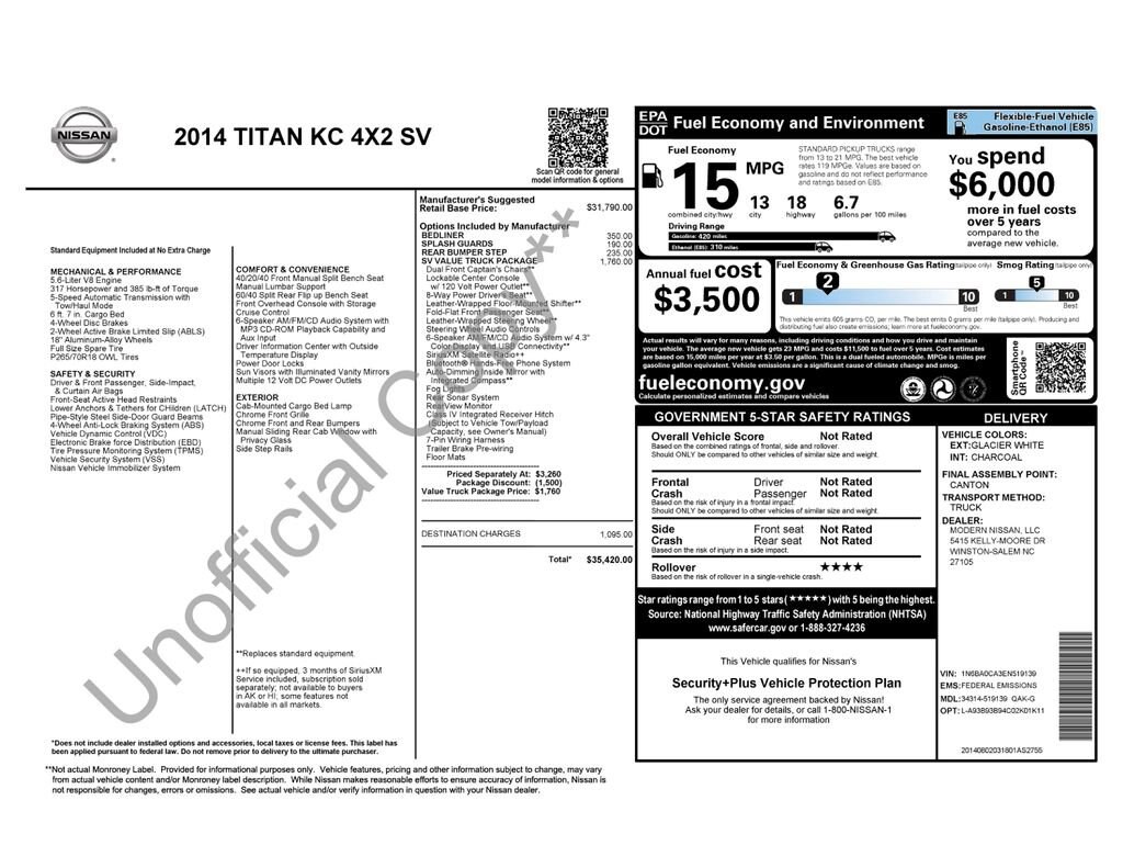 I got the most basic truck on the lot but it still came with carpeted floors and a bedliner along with cruise. I had just run a chevy for 250K miles and thought I had done okay despite putting a new transmission, water pump, and 3 fuel pumps into that chevy....but this Titan is incredible! Like I said 280K miles to date and I haven't replaced anything but the battery (twice) and spark plugs once. Nissan paid for new brakes and rotors at about 30K miles...I've had the ones they installed since then and they still have life left on the pads. The engine is powerful, quiet, and leak-free. I've pulled some insanely heavy trailers and the power up grades is amazing. I've read a few bad reviews...mostly stuff like power window problems and radiators. Obviously I can't say anything about power windows (don't have them) but my radiator has never been a problem...I changed the anti-freeze for the first time a couple months ago. Just a fine vehicle....never a problem...never stranded...all I could ask for...and the price was cheaper than a chevy with a six cylinder, rubber floor mats, and no cruise or bedliner.…