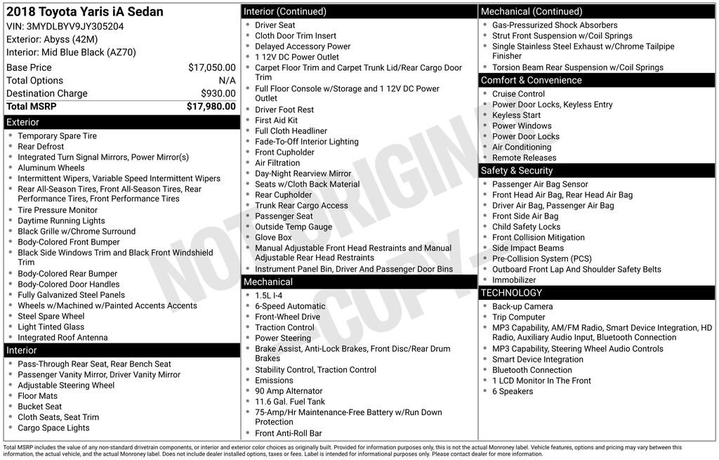 Pre-Owned 2018 ToyotaYaris iA Base Sedan Front-wheel Drive