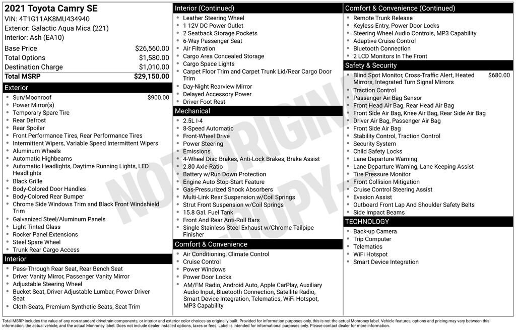 The ALL NEW Gettel Stadium Toyota is excited to offer this 2021 Toyota Camry SE in Aqua with Ash Cloth. It features: