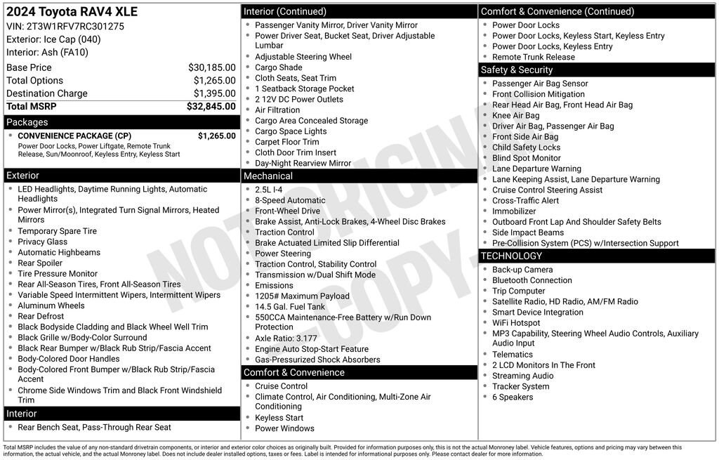The ALL NEW Gettel Stadium Toyota is excited to offer this 2024 Toyota RAV4 XLE in White with Ash Cloth. It features: Prices are plus tax, tag, and title fee, and a pre-delivery service charge in the amount of $1,299.