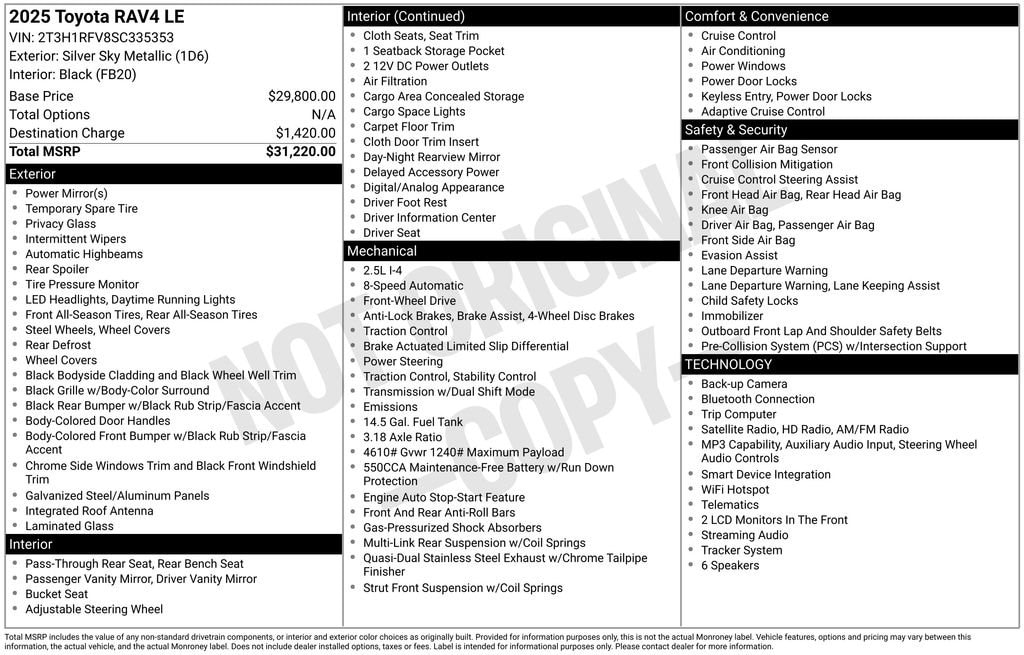 The RAV4 LE comes packed with an array of desirable features, including: